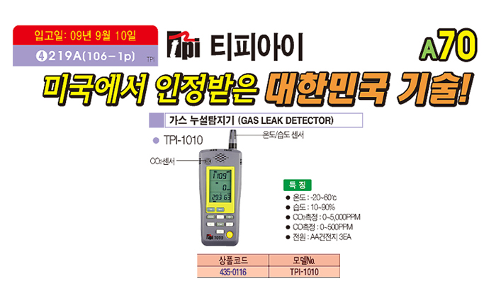 [ƼÇǾÆÀÌ] °¡½º ´©¼³Å½Áö±â (GAS LEAK DETECTOR) TPI-1010