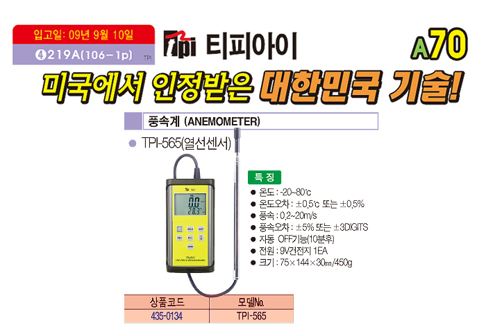 [ƼÇǾÆÀÌ] dz¼Ó°è (ANEMOMETER) TPI-565(¿­¼±¼¾¼­)