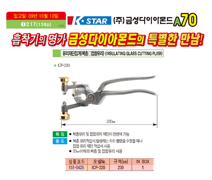 [±Ý¼º´ÙÀ̾Ƹóµå] À¯¸®Àç´ÜÁý°Ô(º¹Ãþ¤ýÁ¢ÇÕÀ¯¸®) (INSULATING GLASS CUTTING PLIER)
