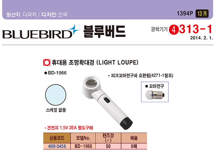 [BLUEBIRD/ºí·ç¹öµå]ÈÞ´ë¿ë Á¶¸íÈ®´ë°æ/½ºÄÉÀϾø´Â ·çÆä(BD-1966,¨ª50x6¹èÈ®´ë)(LIGHT LOUPE)