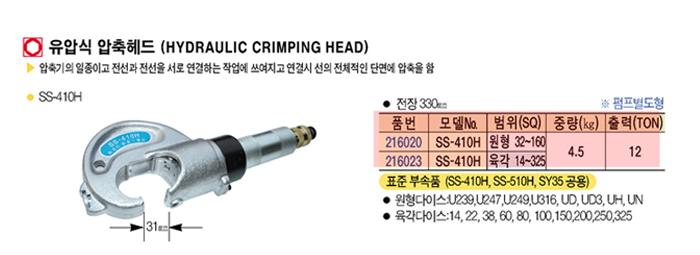[½Å¼º] À¯¾Ð½Ä ¾ÐÃàÇìµå (HYDRAULIC CRIMPING HEAD) SS-410H (´ÙÀ̽º º°µµ)