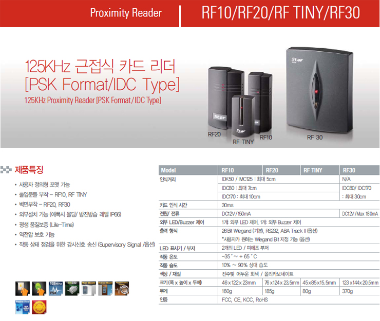 [ID] RF10(±ÙÁ¢½ÄÄ«µå¸®´õ)(Proximity Card Reader)(125Khz Á¦Ç°)