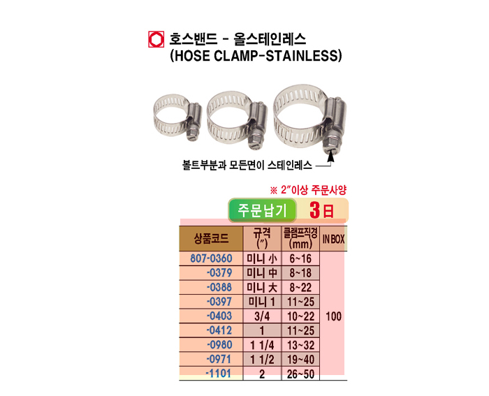 [HANSHIN] È£½º¹êµå - ¿Ã½ºÅ×Àη¹½º (HOSE CLAMP-STAINLESS) (100°³¼¼Æ®)