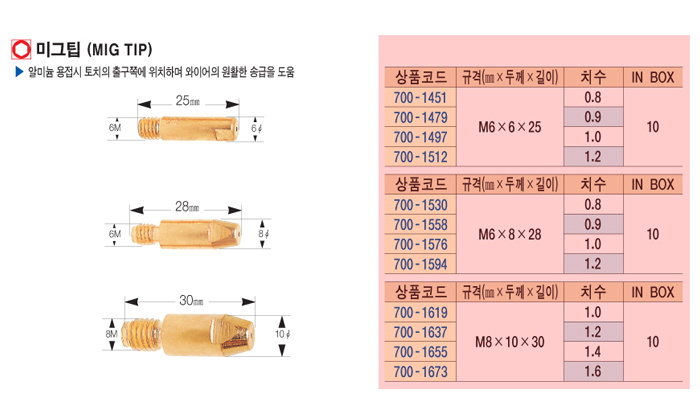 [CRETEC] ¹Ì±×ÆÁ (MIG TIP) M8 ¡¿ 10 ¡¿ 30