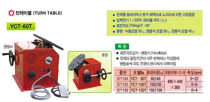 [À¯Ã¼±â°è] ÇÚµé½Ä ÅÏÅ×À̺í/Æ÷Áö¼Å³Ê(YCT-60T, ¼öÆò:60Kg/¼öÁ÷:40Kg, ¿ëÁ¢±â ¹× ±â°èÁ¶¸³¿ë)(Turn Table)