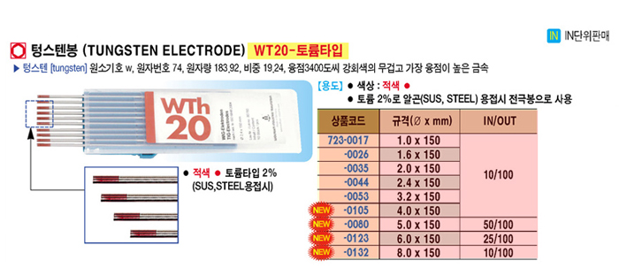 [¿ïÇÁ¶÷] ÅÖ½ºÅÙºÀ (TUNGSTEN ELECTRODE) WT20-Åä·ýŸÀÔ (10°³¼¼Æ®)