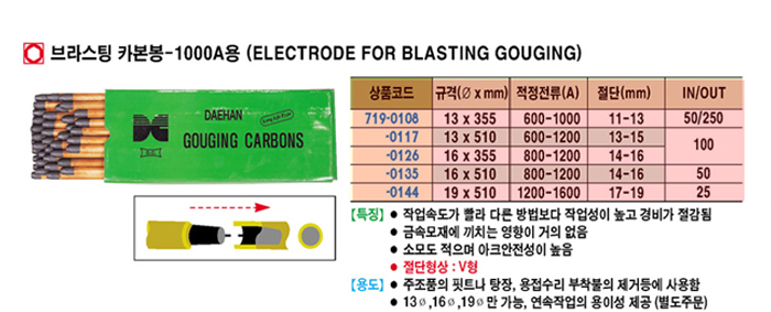 [´ëÇÑÄ«º»] ºê¶ó½ºÆÃ Ä«º»ºÀ-1000A (ELECTRODE FOR GOUGING)