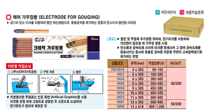 [Å©·¹ÅØ] ¿¡¾î °¡¿ì¡ºÀ (ELECTRODE FOR GOUGING) (250°³ ¼¼Æ®)