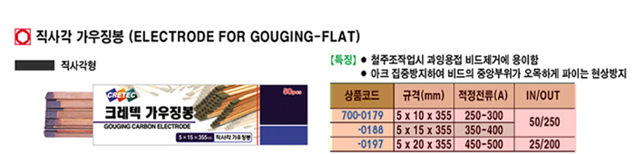 [Å©·¹ÅØ] Á÷»ç°¢ °¡¿ì¡ºÀ (ELECTRODE FOR GOUGING-FLAT) (50°³¼¼Æ®)