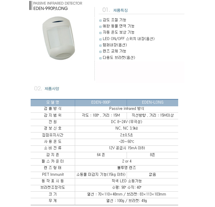 [HT] ¿­¼±°¨Áö±â(EDEN-990P, 100µµ/15¹ÌÅÍ, ÀÛÀºµ¿¹° ¹«°¨ÁöÇü)(Passive Infrared Detector)