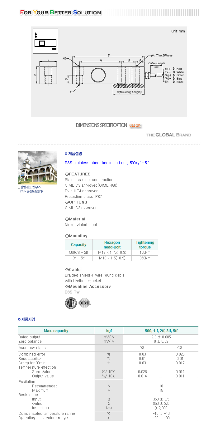 [CAS]·Îµå¼¿ BSS (500kgf-5tf)/BSS stainless shear beam load cell, 500kgf - 5tf