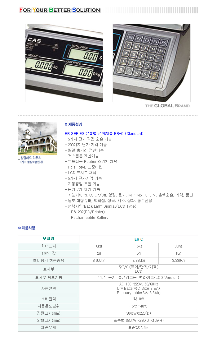 [CAS]À¯ÅëÇü ÀüÀÚÀú¿ï ER-6CB(LCD)/(ÃÖ´ëÁß·® 6Kg, ÃøÁ¤Á¤µµ 1g)/(Standard Price Computing Scale)/ER SERIES ÀüÀÚÀú¿ï