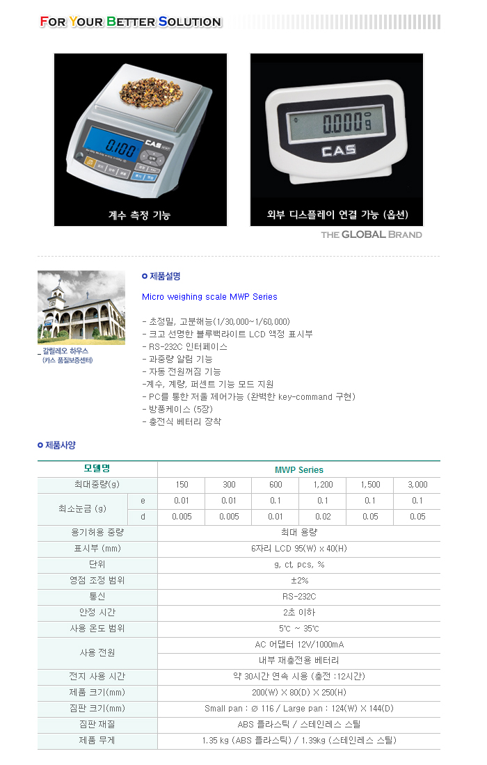 [CAS]°íÁ¤¹Ð ¹Ì·® ÀüÀÚÀú¿ï MWP-600H(ÃÖ´ëÁß·® 600g, Ç¥½ÃÁ¤µµ 0.01g)(ºÐÇØ´É·Â 1/60000)(Micro Weighing)(°è¼ö/°è·®Áö¿ø/Åë½ÅÁö¿ø)