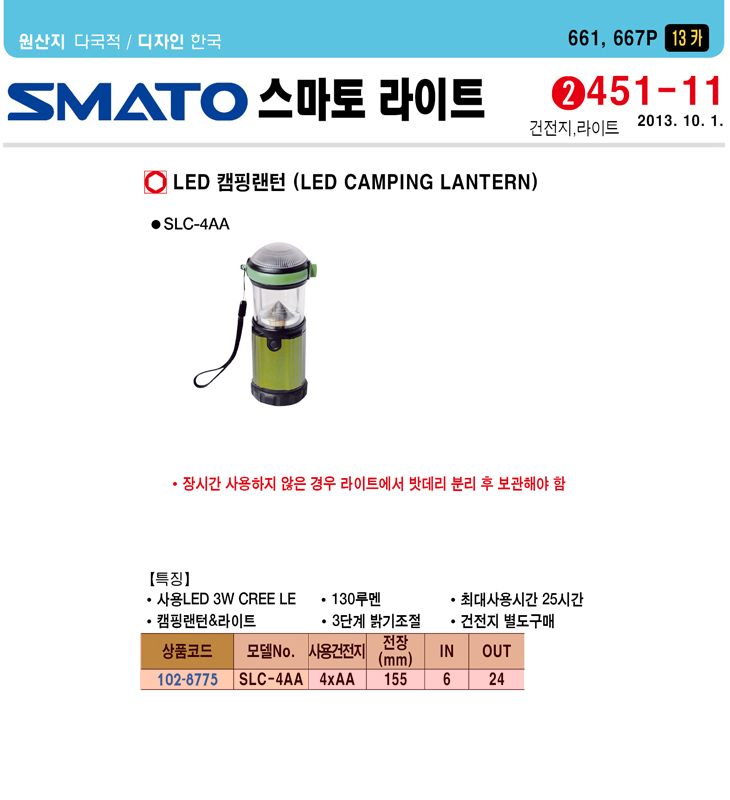 [½º¸¶Åä]LED Ä·Çη£ÅÏ(SLC-4AA,130·ç¸à/3´Ü°è¹à±âÁ¶Á¤/3Watt CREE LED)(LED CAMPING LANTERN)