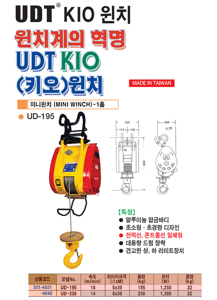 [UDT] UDT KIO¹Ì´ÏÀ©Ä¡(UD-195 1Ȧ )(¼Óµµ 18M/Min, ºÎÇÏÁß·® 195Kg)(Mini Winch)