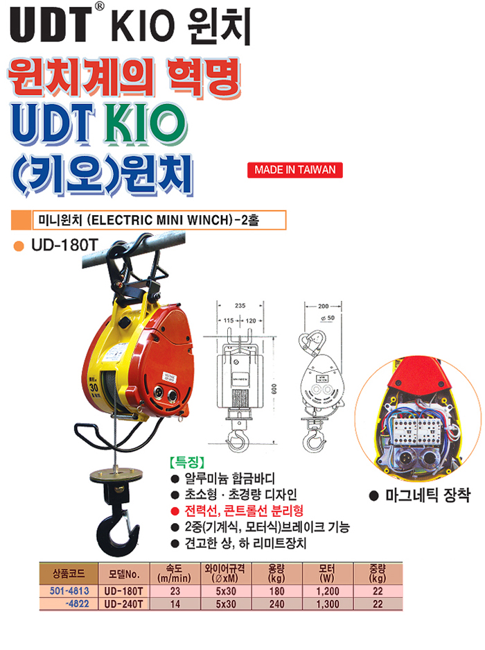 [UDT] UDT KIO¹Ì´ÏÀ©Ä¡(UD-180T 2Ȧ )(¼Óµµ 23M/Min, ºÎÇÏÁß·® 180Kg)(Mini Winch)