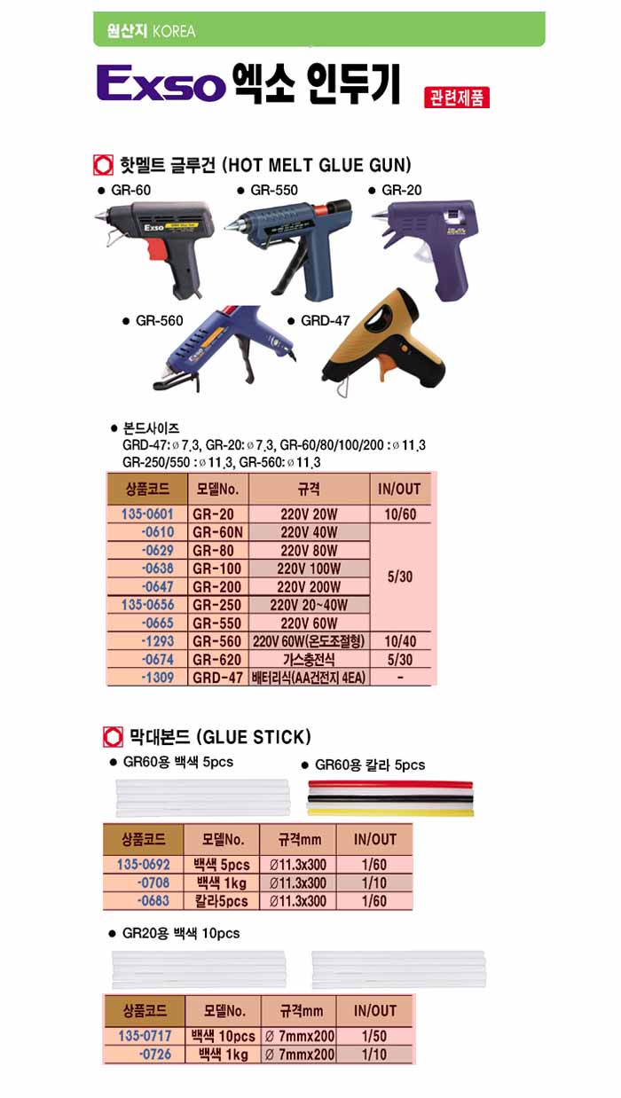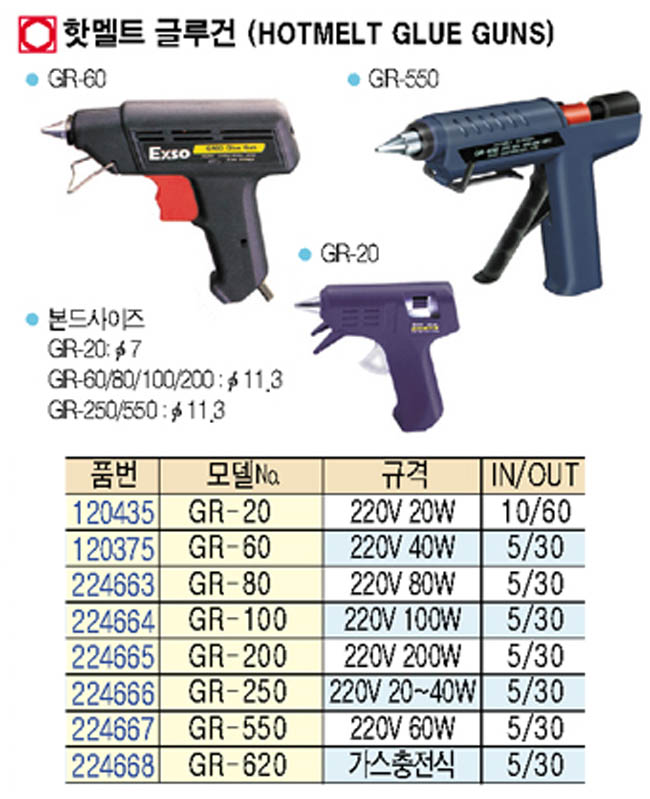 [Exso] ÇÖ¸áÆ® ±Û·ç°Ç/Hot Melt Glue Gun(GR-550 60Watt 11.3ÆÄÀÌ ´ëÇü½ºÆ½¿ë)