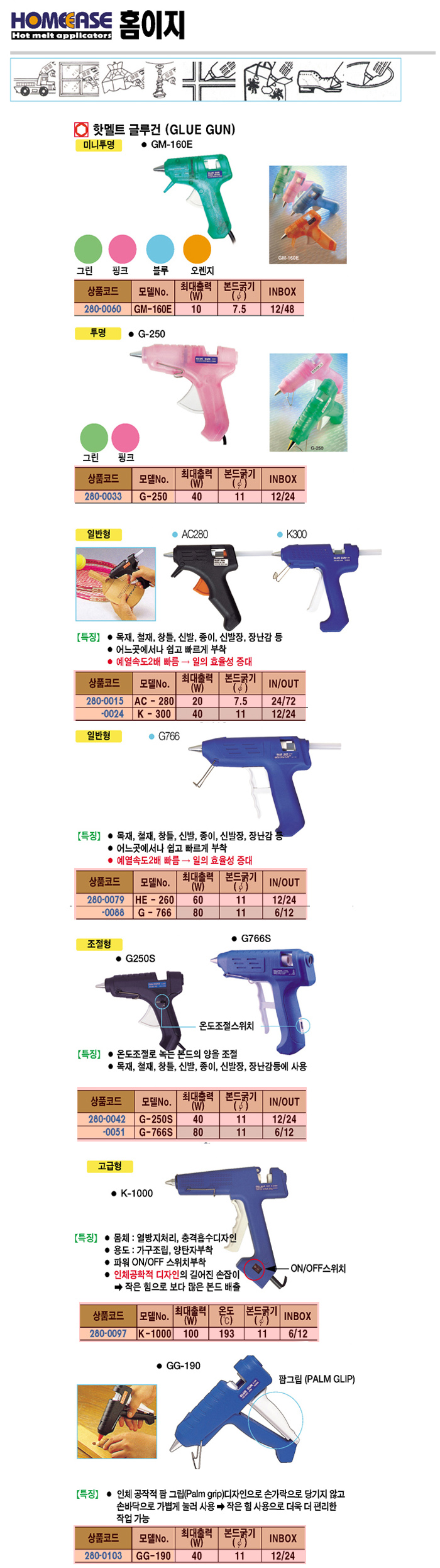 [HOMEEASE] ÇÖ¸áÆ®±Û·ç°Ç(ȨÀÌÁö)/Hot Melt Glue Gun(AC-280 20Watt)(7.3ÆÄÀÌ ¼ÒÇü½ºÆ½¿ë)