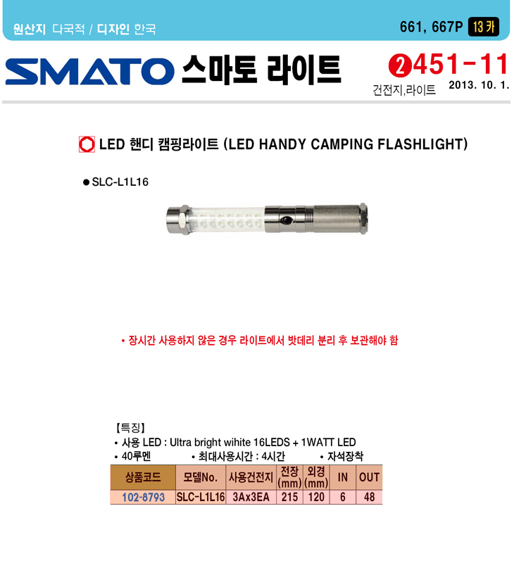 [½º¸¶Åä]LED ÇÚµð Ä·ÇÎ ¶óÀÌÆ®(SLC-L1L16,40·ç¸à/ÀÚ¼®ÀåÂø)(LED HANDY CAMPING FLASHLIGHT)(ÁÖ¹®Àü Àç°íÈ®ÀÎ)
