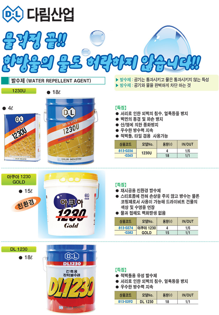 [´Ù¸²] ¹ß¼öÁ¦(1230U 18¸®ÅÍ)(Àûº®µ¹ ŸÀÏ¿ë À¯¼º¹ß¼öÁ¦)(Water Repellent Agent)=>Á¦Ç°´ÜÁ¾!