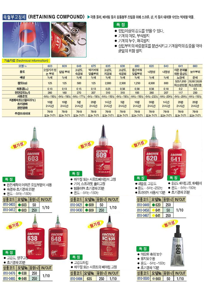 [·ÏŸÀÌÆ®/LOCTITE] ÃàÇ÷ºÎ °íÁ¤Á¦ (RETAINING COMPOUND)(638 250ml Çø±â¼º)