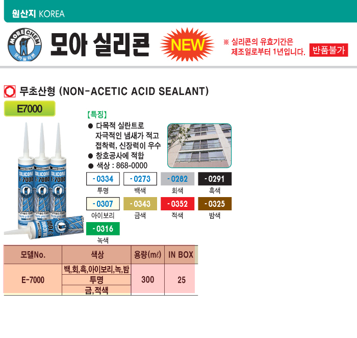 [¸ð¾Æ] ¹«ÃÊ»êÇü½Ç¸®ÄÜ(NON-ACETIC ACID SEALANT)(E7000 ´Ù¾çÇÑ »ö»ó¼±Åð¡´É)(¹Ú½º 25°³ ´ÜÀ§ ÆÇ¸Å)(´Ù¸ñÀû ½Ç¶õÆ®, âȣ°ø»ç¿¡ ÀûÇÕ)