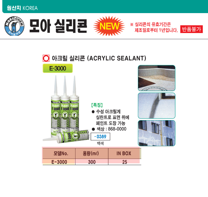 [¸ð¾Æ] ¾ÆÅ©¸±½Ç¸®ÄÜ(ACRYLIC SEALANT)(½Ç¶õÆ® E3000 ¹é»ö)(¹Ú½º 25°³ ´ÜÀ§ ÆÇ¸Å)(¼ö¼º¾ÆÅ©¸±°è, Ç¥¸é µµÀå°¡´É)