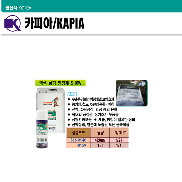 [Ä«ÇǾÆ] »çÃâ±ÝÇü ¹æÃ»Á¦(Mold Rust Inhibitor)(¹é»ö ±ÝÇü ¹æÃ»Á¦ S-10W 420ml)