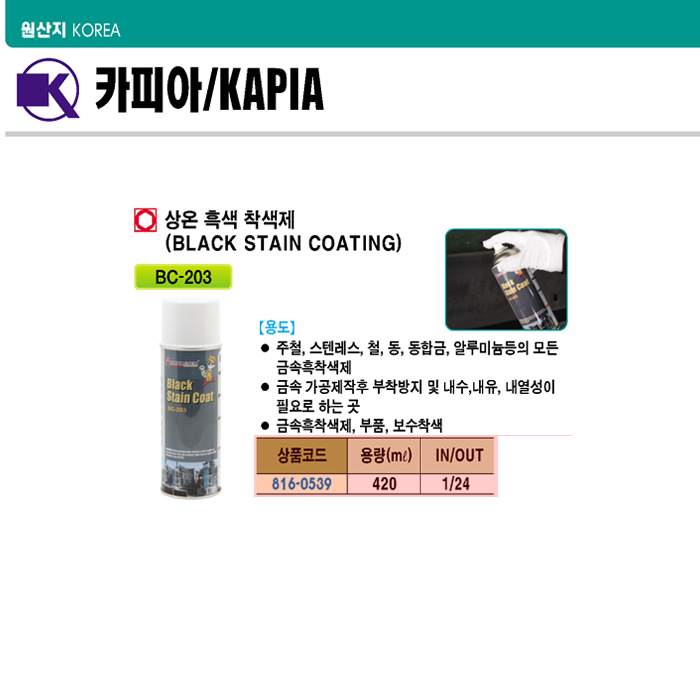 [Ä«ÇǾÆ] »ó¿Â Èæ»ö Âø»öÁ¦(Black Stain Coating)(BC-203 420ml)=>ÀÎÅÍ³Ý ÆÇ¸Å ºÒ°¡(È­Æò¹ý ´ë»ó»óǰ)