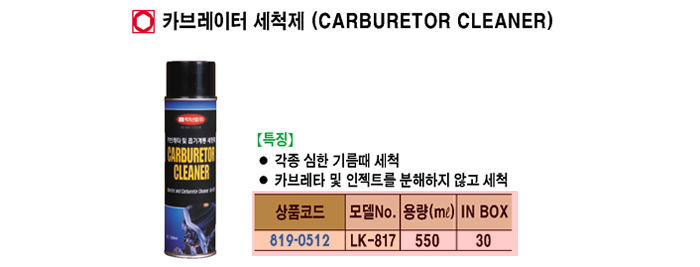 [·°Å°»ê¾÷] Ä«ºê·¹ÀÌÅÍ ¼¼Ã´Á¦(Carburetor Cleaner)(LK-817 550ml)(30°³ ¹Ú½º´ÜÀ§ ÆÇ¸Å)