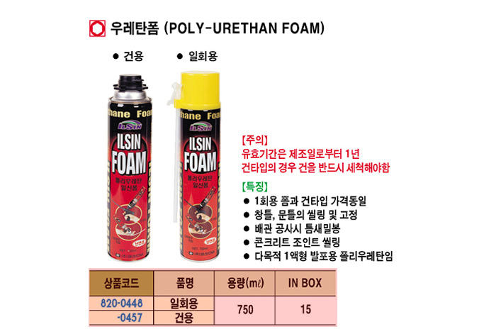 [ÀϽÅ] ¿ì·¹ÅºÆû(Poly Urethan Foam)(ÀÏȸ¿ë 750ml)(15°³ ¹Ú½º´ÜÀ§ ÆÇ¸Å)