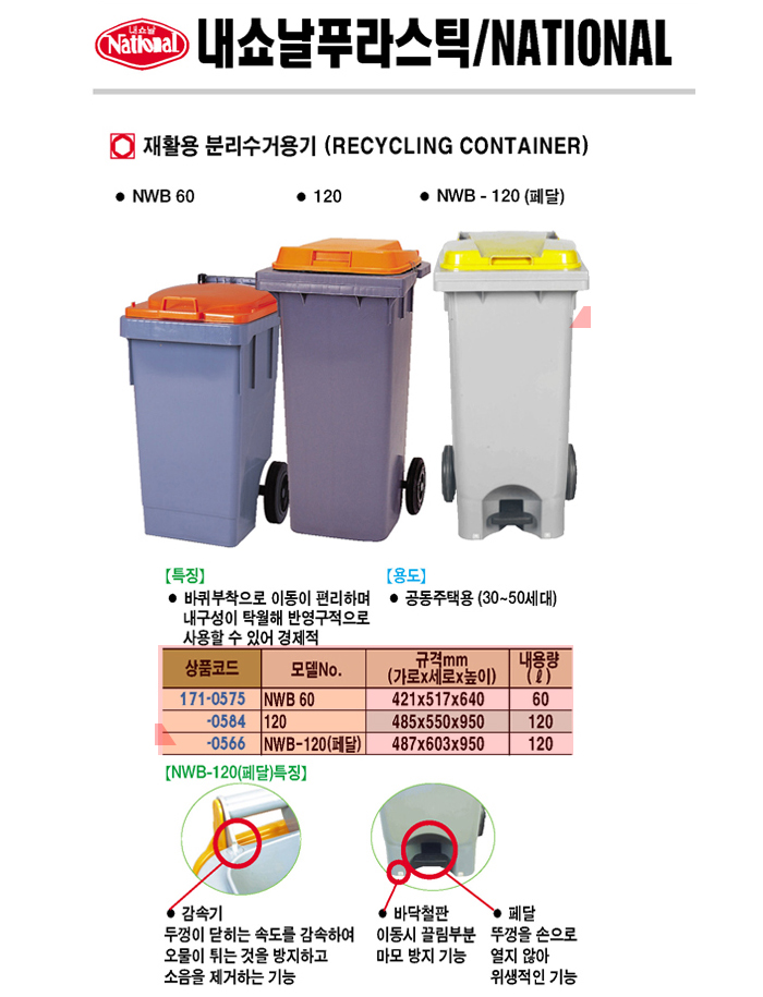 [³»¼î³¯] ÀçȰ¿ëºÐ¸®¼ö°Å¿ë±â(NWB-60 60¸®ÅÍ)(421x517x640mm)(Recycling Container)