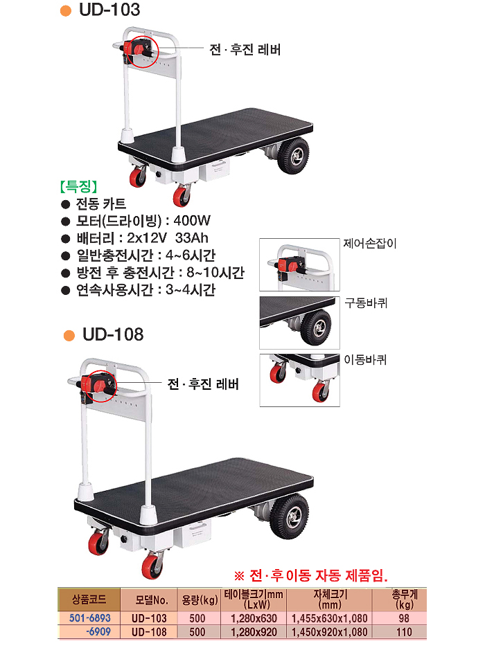 [UDT] Àüµ¿Ä«Æ®(UD-108)(ºÎÇÏÁß·® 500Kg, ÀüÈÄÁø ÀÚµ¿)(Electric Cart)=>Á¦Ç°´ÜÁ¾!