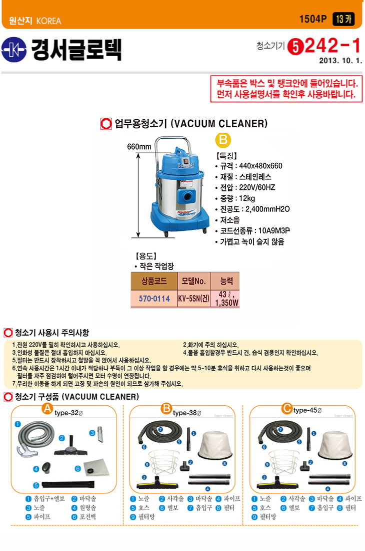 [°æ¼­] ¾÷¹«¿ëû¼Ò±â(KV-5S, °Ç½Ä 1350Watt/½À½Ä 1200Watt ¼±Åð¡´É, 30¸®ÅÍ)