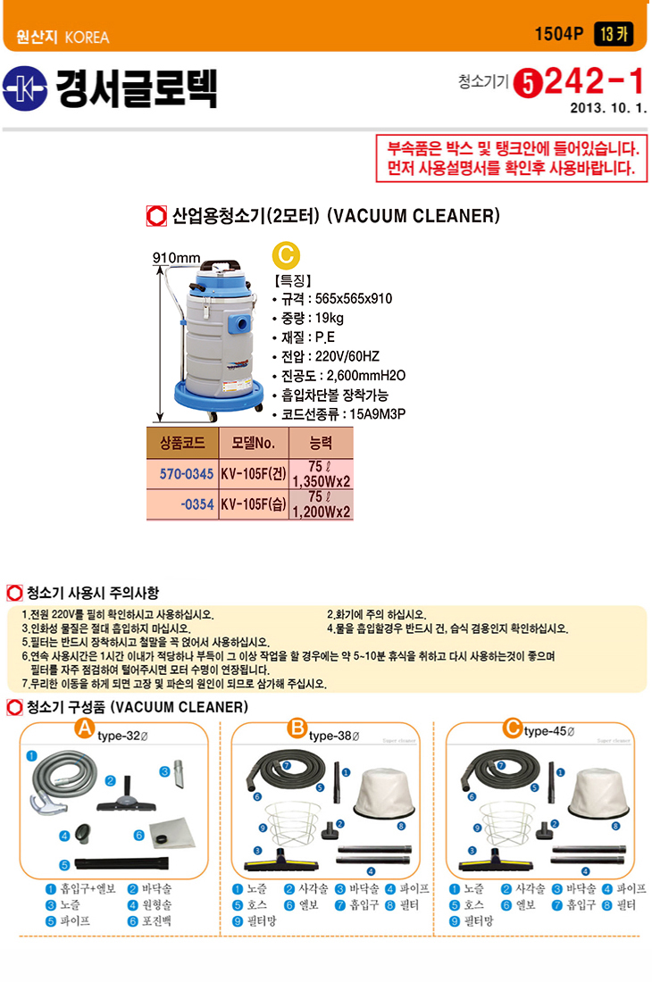 [°æ¼­] »ê¾÷¿ëû¼Ò±â 2¸ðÅÍ (KV-105F, °Ç½Ä 1350Watt x 2´ë/½À½Ä 1200Watt x 2´ë ¼±Åð¡´É, 75¸®ÅÍ)