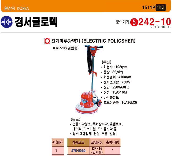 [°æ¼­] Àü±â¸¶·ç ±¤Åñâ(KP-16, ¹ü¿ë, 410ÆÄÀÌ, 750Watt)