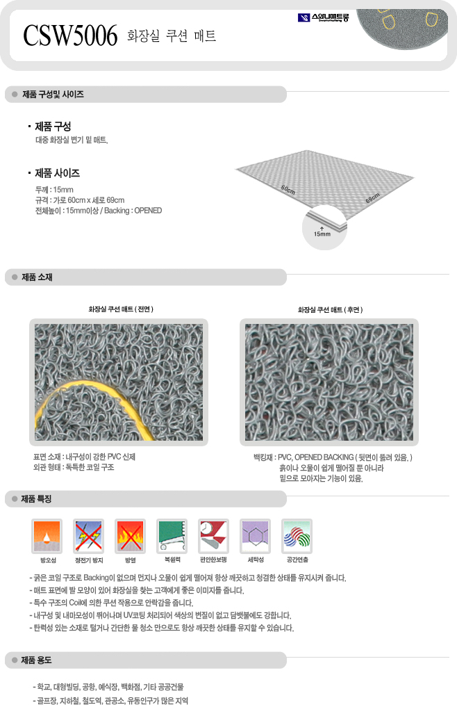 [½º¿Í´Ï]È­Àå½Ç Äí¼Ç¸ÅÆ®(CSW5006, ³ôÀÌ 15mm 600x690mm, ȸ»ö)