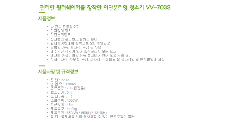 [º¸Èï] À̴ܺи® 3¸ðÅÍ Áø°øÃ»¼Ò±â(VV-703S, °Ç½Ä/½À½Ä °â¿ë, 70¸®ÅÍ, 1350Watt x 3°³)(Vacuum Cleaner)
