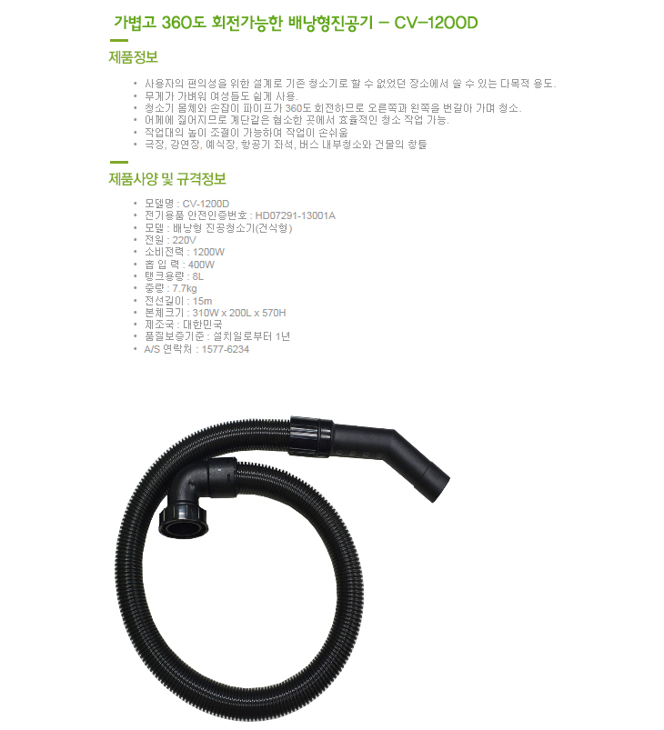 [º¸Èï] ¹è³¶Çü(¸á»§Çü) û¼Ò±â(CV-1200D, ȸÀü°¡´ÉÇü °Ç½Ä, 8¸®ÅÍ, 1200Watt x 1°³)(Vacuum Cleaner)