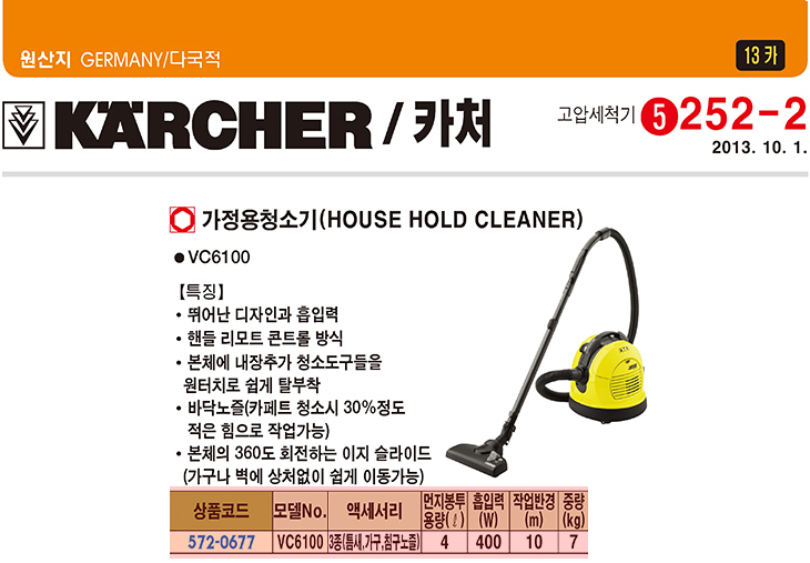 [īó] °¡Á¤¿ë û¼Ò±â(VC6100, 4¸®ÅÍ/400Watt, Æ´»õ/°¡±¸/ħ±¸³ëÁñ 3Á¾ Æ÷ÇÔ)(House Hold Cleaner)