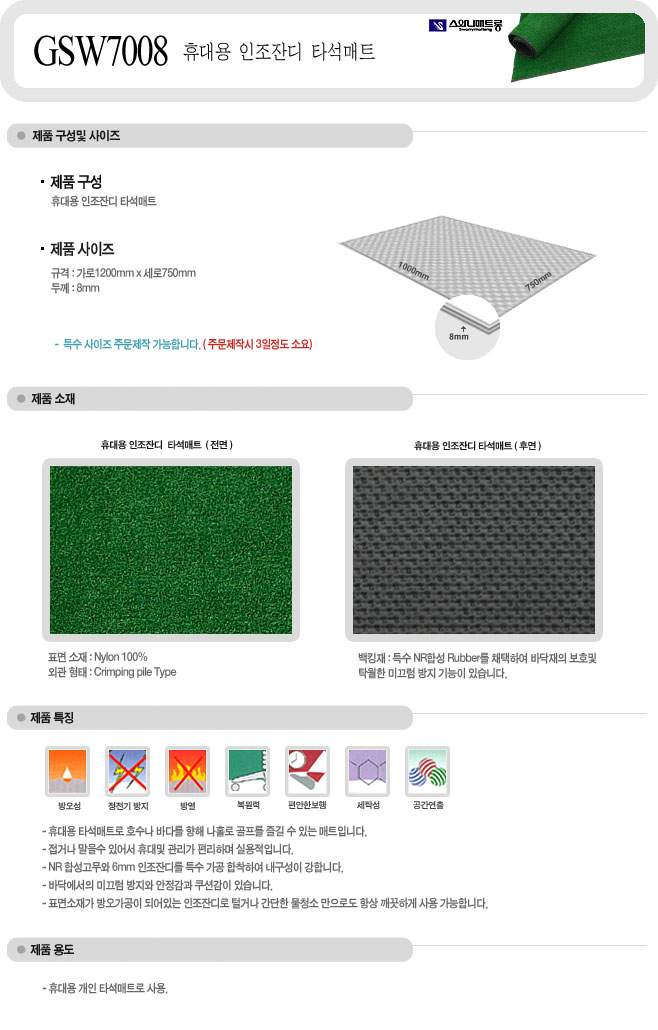 [½º¿Í´Ï] ÈÞ´ë¿ë ÀÎÁ¶Àܵ𠟼®¸ÅÆ®(GSW7008, µÎ²²8mm Å©±â1200mm x ¼¼·Î750mm)(°ßÀû¿äû)=>ÀϽÃǰÀý!
