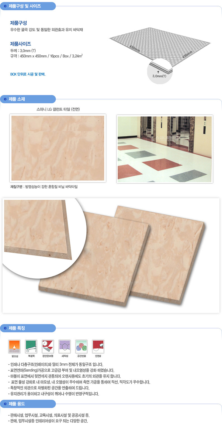 [SW] LG °¶·±Æ® ŸÀÏ(GAT-711, 16¸Å ¹­À½/¾à 1Æò½Ã°ø°¡´É, 3.0T, 450x450mm, ¸¶ºí¸µ¹«´Ì, »ó¾÷¿ë¹Ù´ÚÀç)