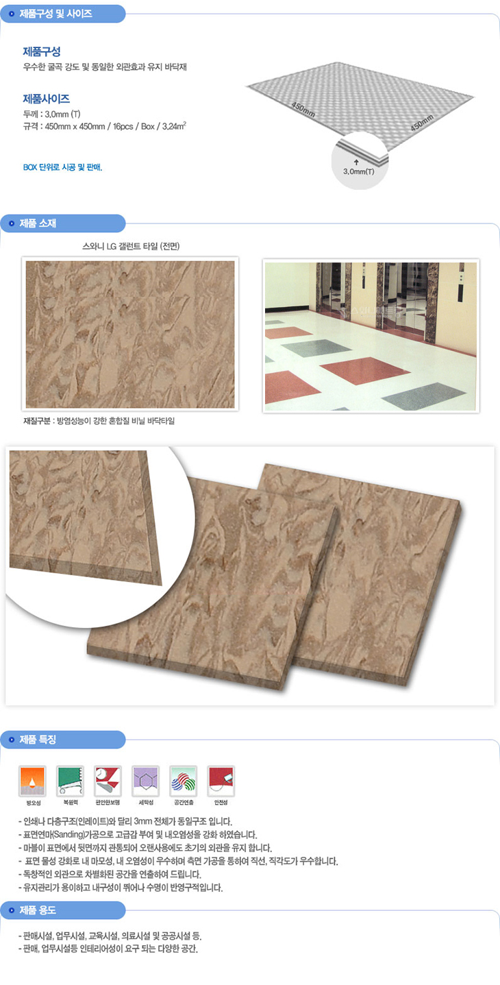 [SW] LG °¶·±Æ® ŸÀÏ(GAT-709, 16¸Å ¹­À½/¾à 1Æò½Ã°ø°¡´É, 3.0T, 450x450mm, ¸¶ºí¸µ¹«´Ì, »ó¾÷¿ë¹Ù´ÚÀç)