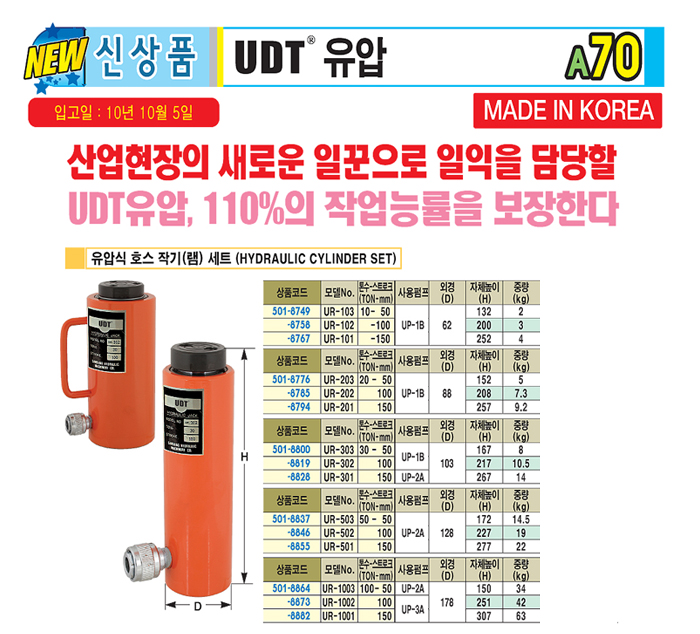 [UDT] À¯¾Ð½Ä È£½º ÀÛ±â(·¥) (HYDRAULIC CYLINDER)(¸ðµ¨No. UR-101~UR-303)