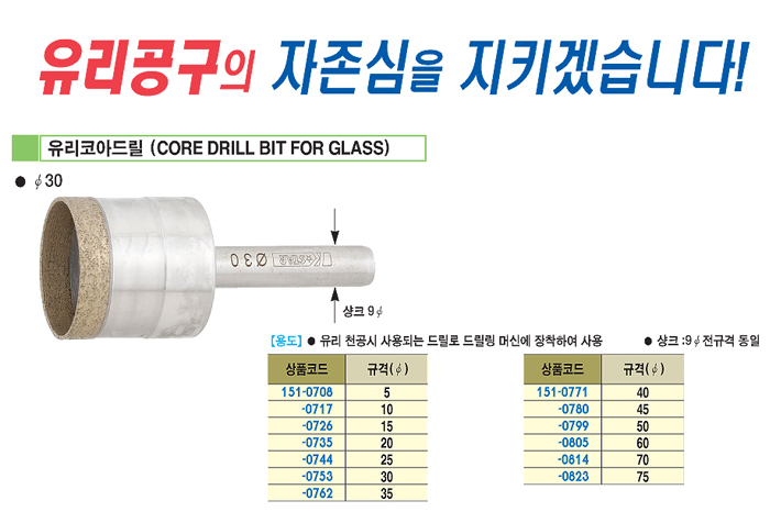 [±Ý¼º] À¯¸®ÄھƵ帱 (CORE DRILL BIT FOR GLASS) (ÁÖ¹®Àü Àç°íÈ®Àοä¸Á)