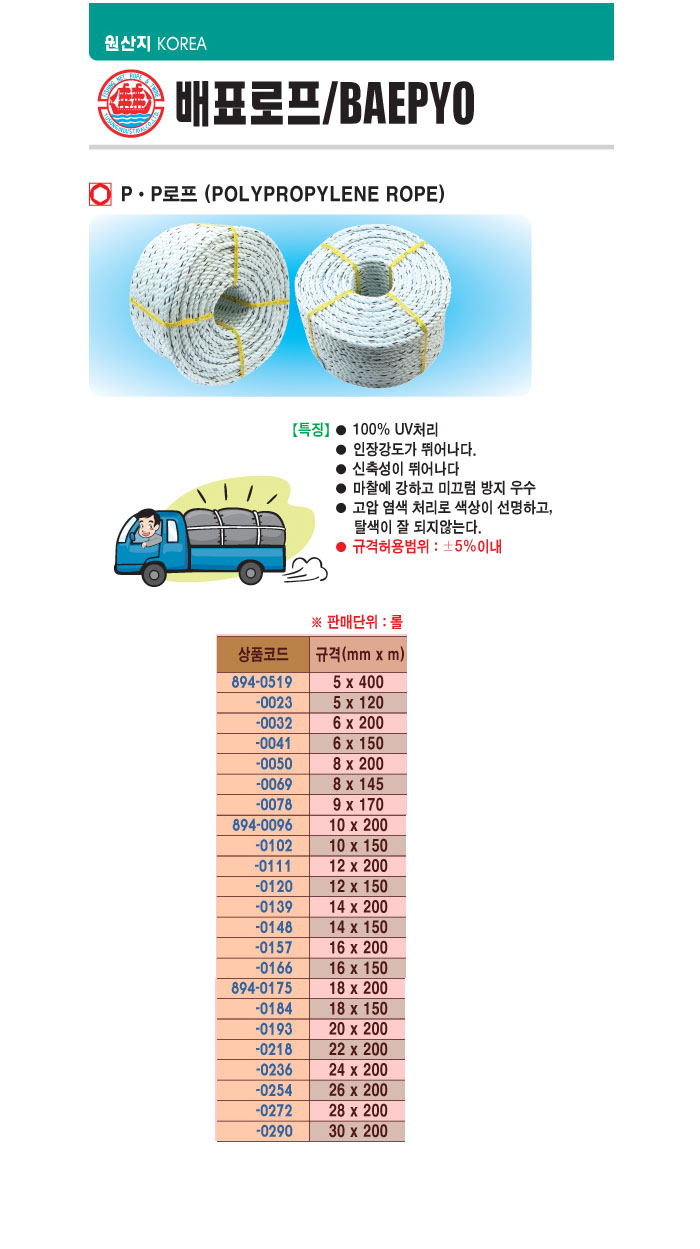 [¹èÇ¥] PP·ÎÇÁ(POLY PROPYLENE ROPE)(Á÷°æ16mm, ±æÀÌ200¹ÌÅÍ, 24.2kg)