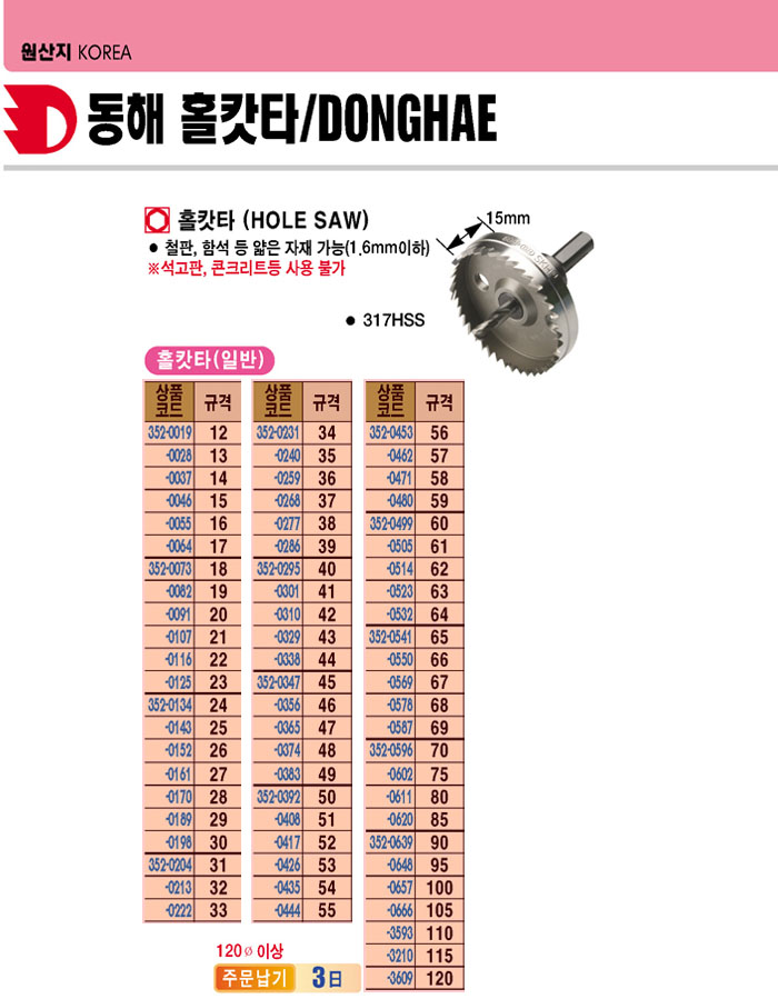 [µ¿ÇØ]ȦıŸ(HOLE SAW)(30 ©ª)(öÆÇ, ÇÔ¼® 1.6mmÀÌÇÏ ¾ãÀº ÀÚÀç)(¼®°íÆÇ, ÄÜÅ©¸®Æ® »ç¿ëºÒ°¡)