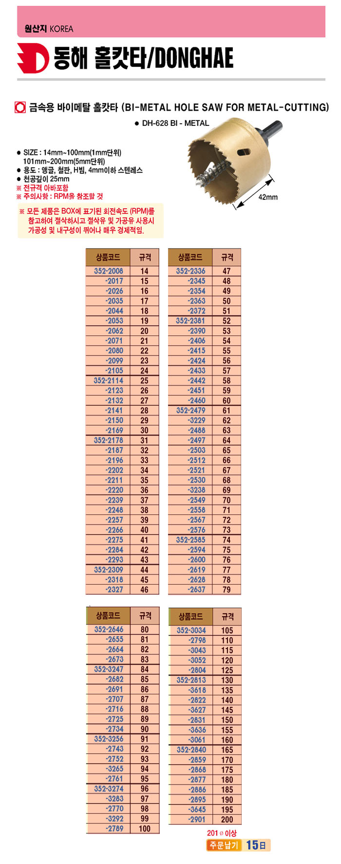 [µ¿ÇØ]±Ý¼Ó¿ë ¹ÙÀ̸ÞÅ» ȦıŸ(Bi-metal Hole Saw)(31 ©ª)(õ°ø±íÀÌ 42mm, ¾Þ±Û, öÆÇ, Hºö, 4mmÀÌÇÏ ½ºÅÙ)(¾Æ¹ÙÆ÷ÇÔ)