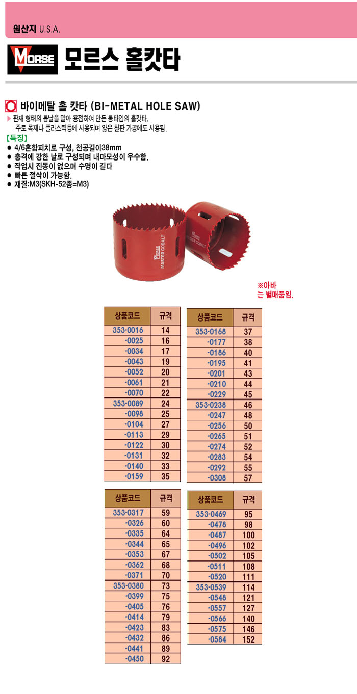 [¸ð¸£½º]¹ÙÀ̸ÞÅ» ȦıŸ(Bi-metal Hole Saw)(100©ª)(õ°ø±íÀÌ 38mm, ¸ñÀç, ÇÃ¶ó½ºÆ½, ¾ãÀº öÆÇ)(¾Æ¹Ùº°¸Å)