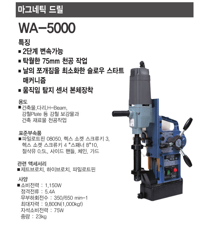 [NITTO] ´ÏÅä ¸¶±×³×Æ® µå¸±/¸¶±×µå¸± ºÎǰ(WA-5000, 2´Üº¯¼Ó, 50ÆÄÀÌ, 1150Watt, 350/650RPM, 23.0Kg)(Magnetic Drill)